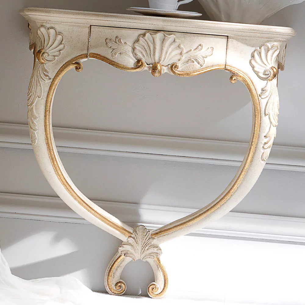 She curves gently along the wall, her oval form draped in soft ivory and dusted with the lightest breath of gold — a finish that glows more than it shines.