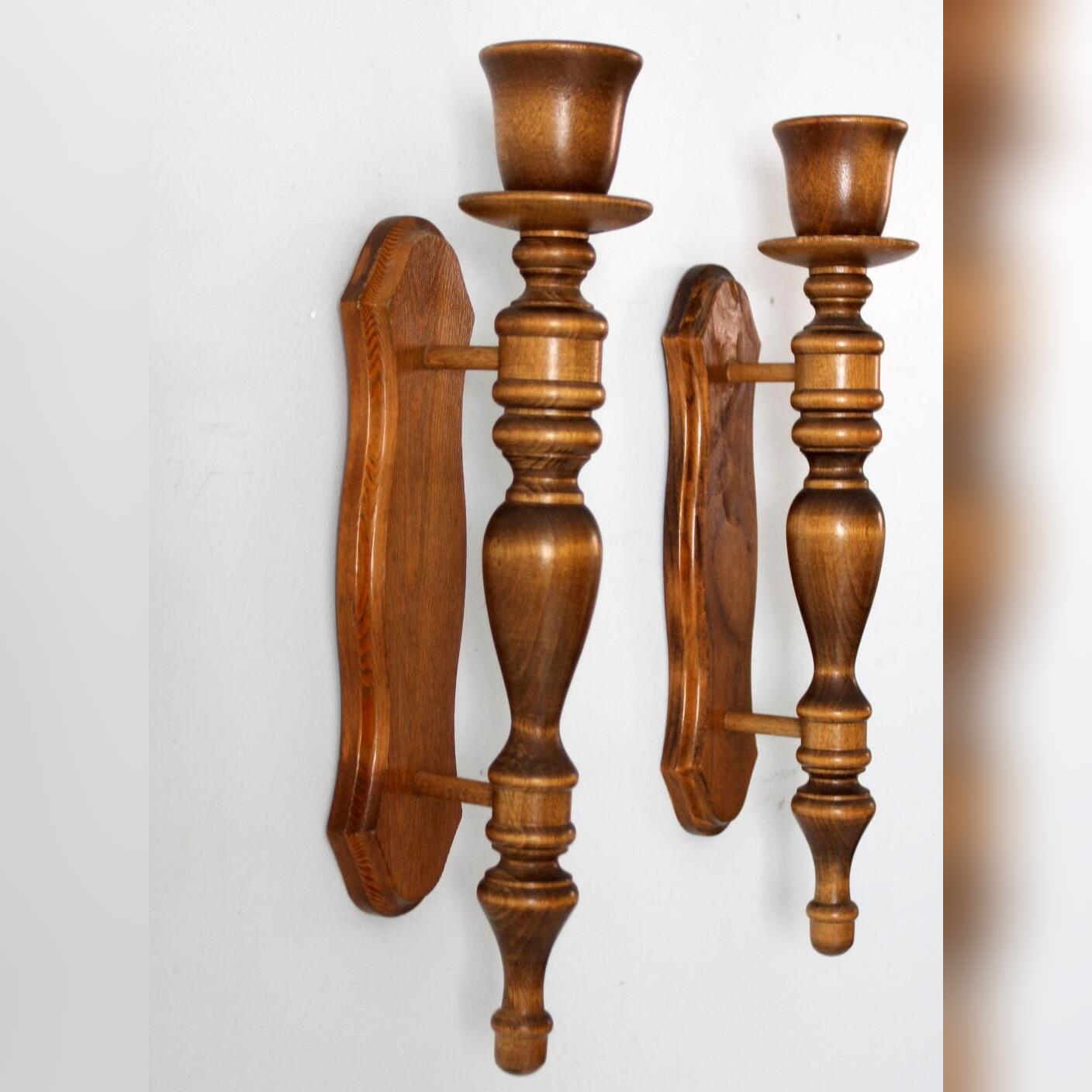 These sconces are not mere holders — they are wooden soliloquies, carved in symmetry, speaking the language of vintage parlors and moonlit corridors.