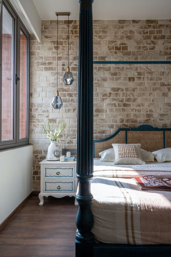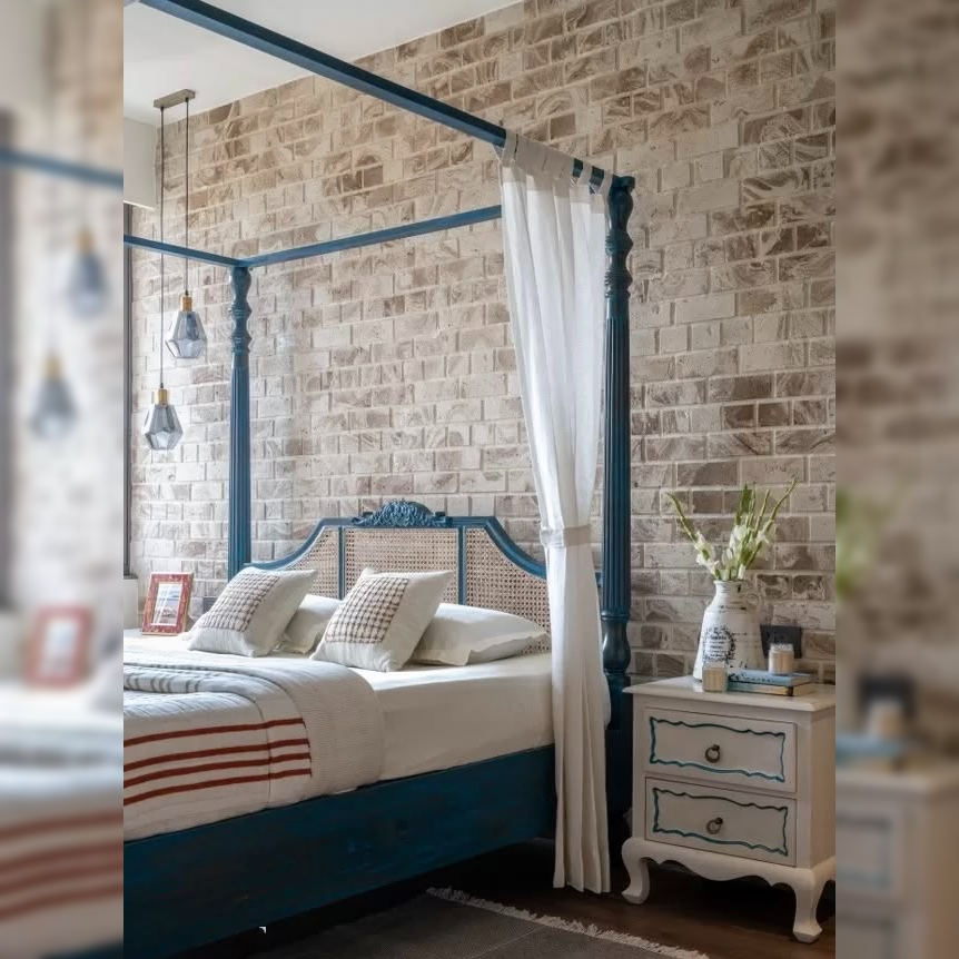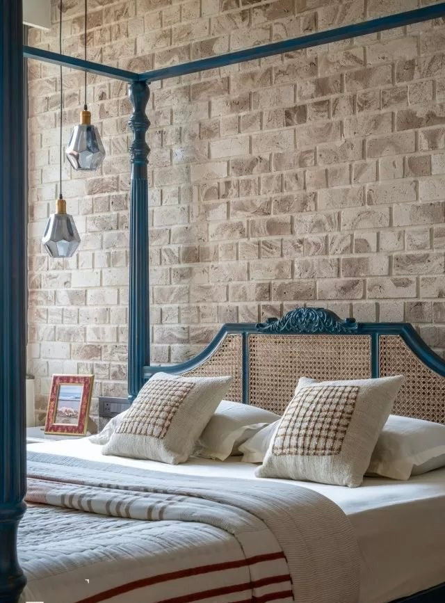 With its bold blue finish and the quiet elegance of natural cane, it evokes a world where silence is plush, time moves slower, and every night is a scene set for stillness.