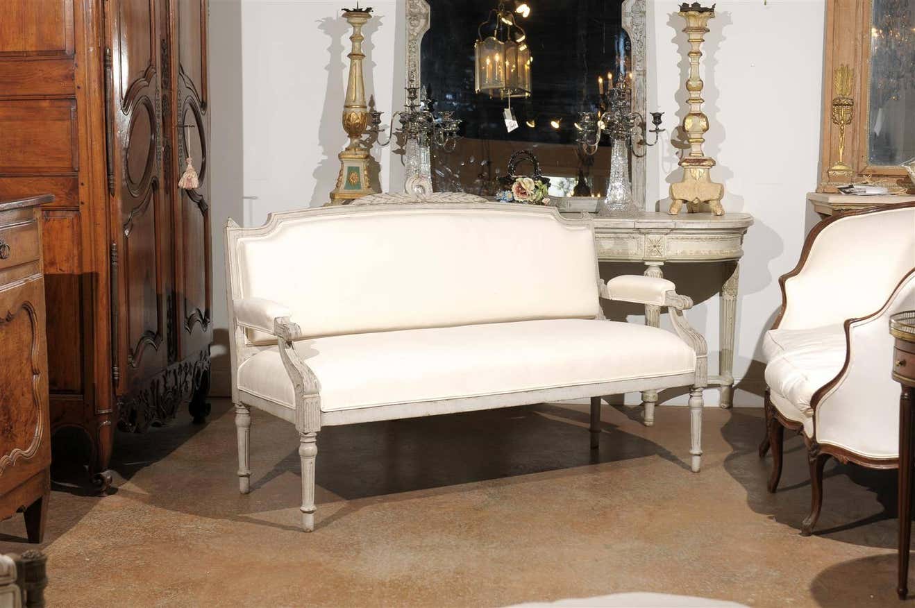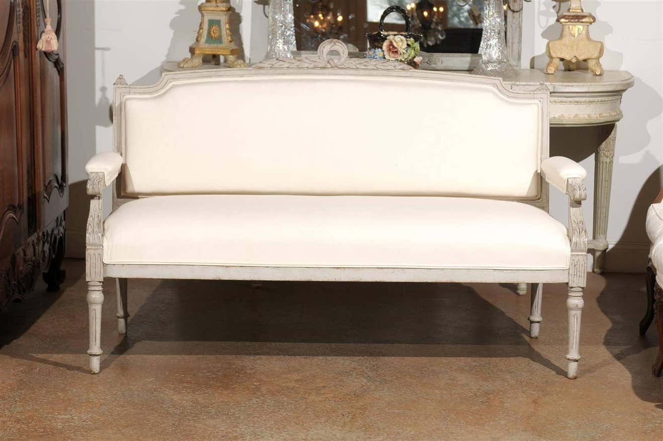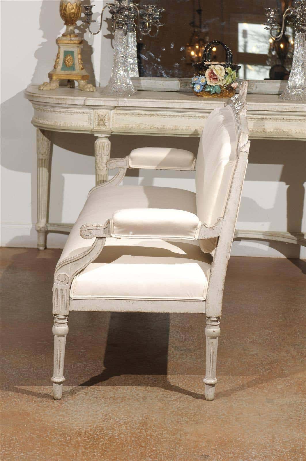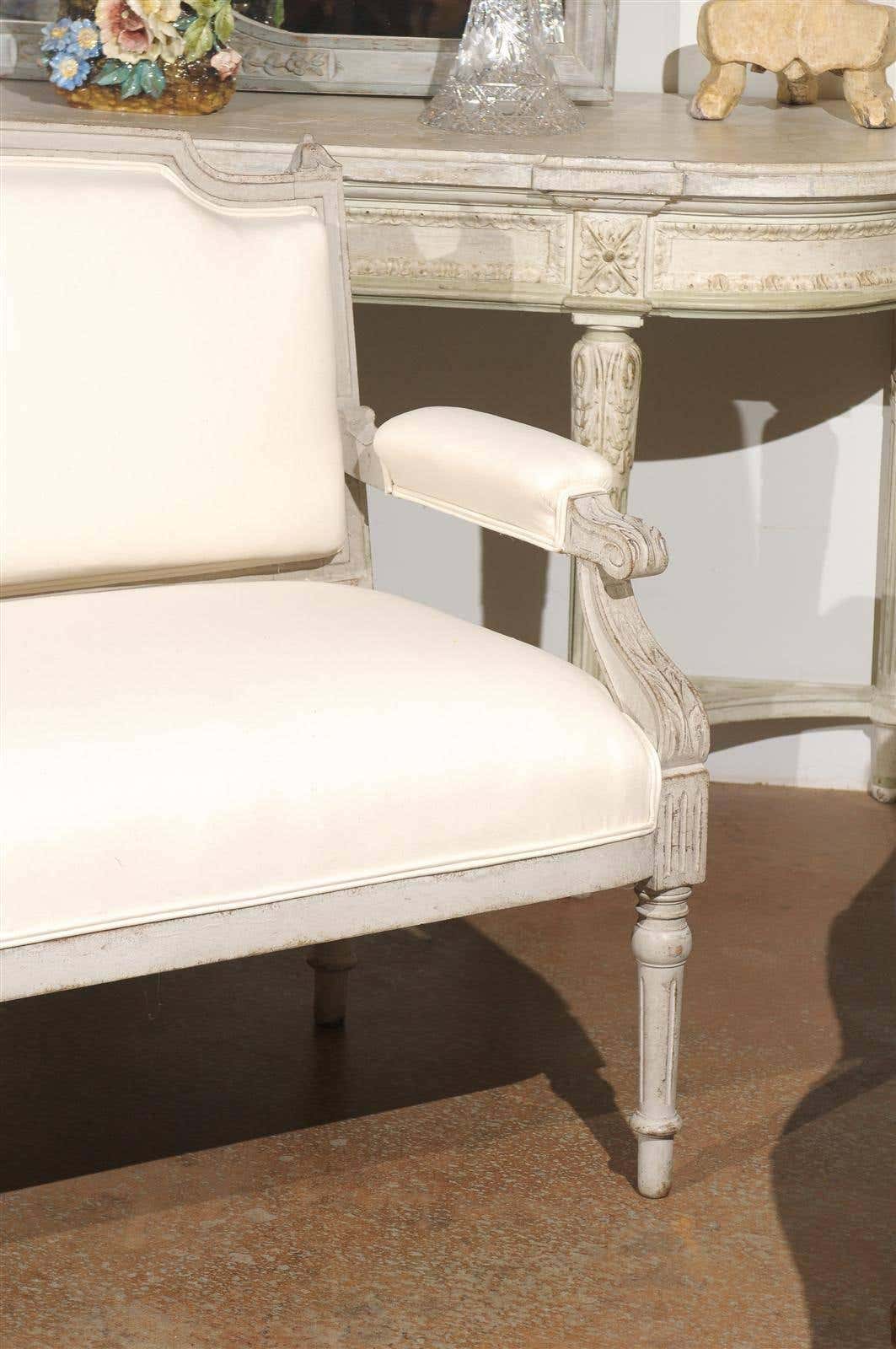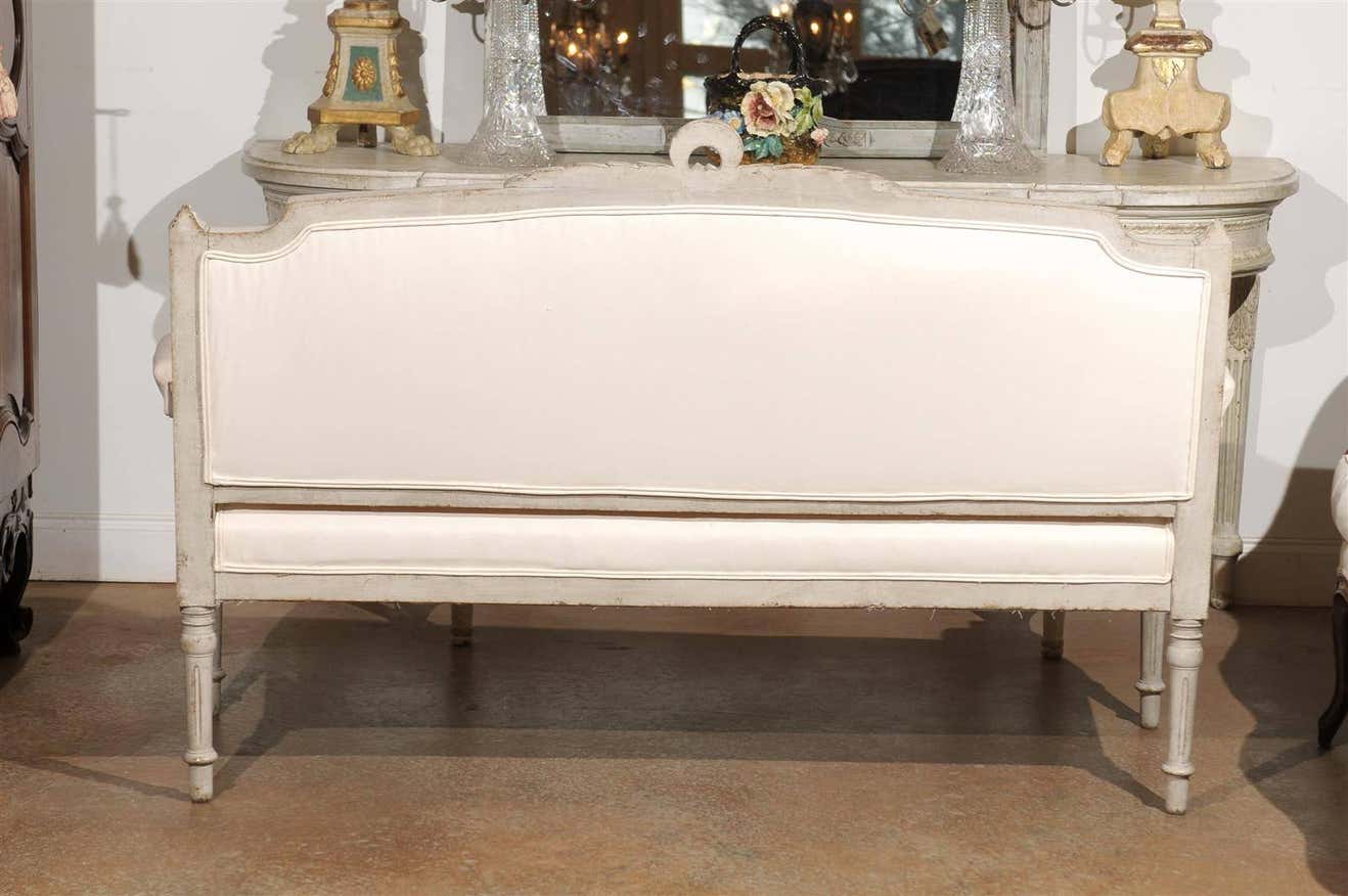 The whitewashed frame, subtly distressed, reveals soft carvings that speak of old-world gentility—never loud, always graceful.