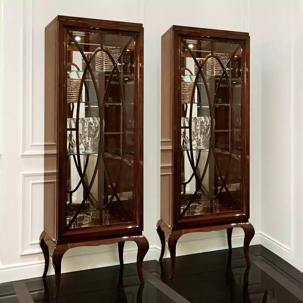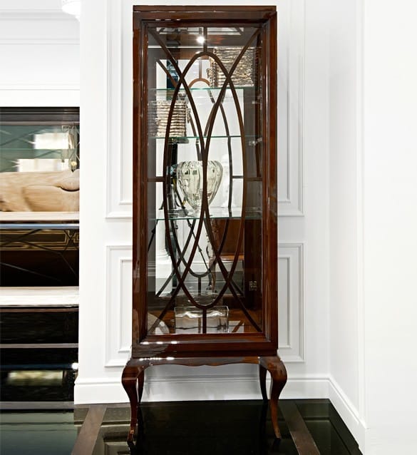 Her glass is clear, uncomplicated, a transparent veil over curated treasures.