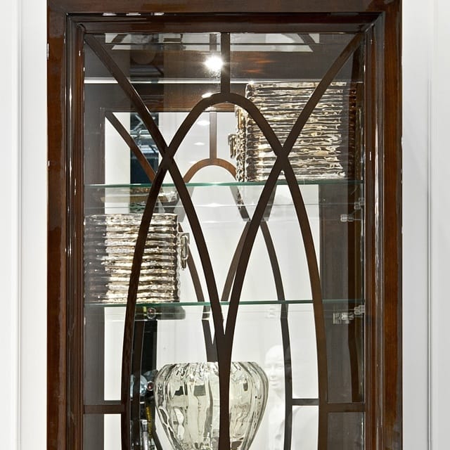 The display is honest, inviting the eye inward, where a delicate crisscross wooden lattice frames space like poetry in structure.