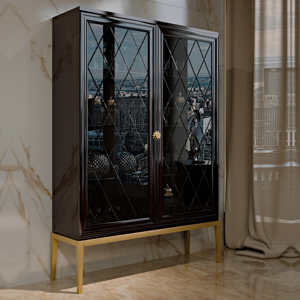 The tinted glass front deepens the mystery within, softened by a delicate lattice of wooden crosswork—lines that intersect like fate, rhythm, and old-world craft.