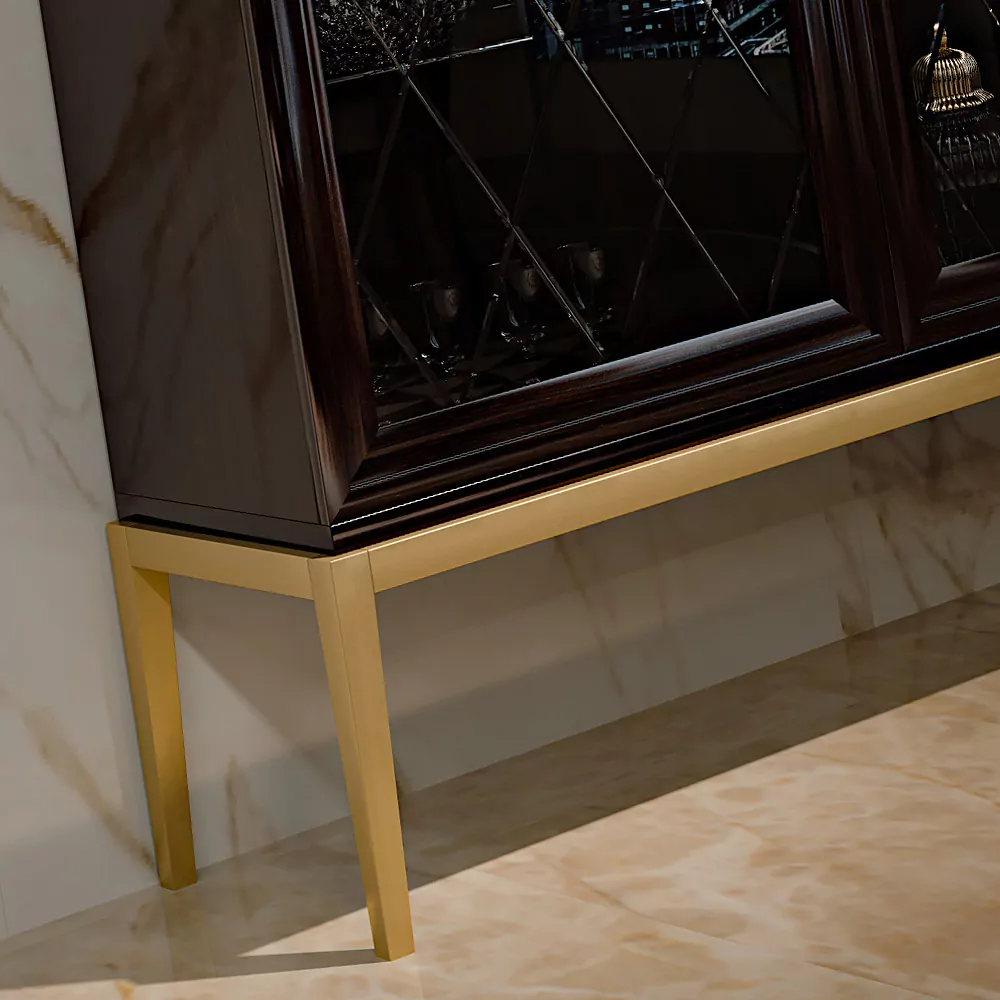 His form is bold, unhurried—balanced by the quiet gleam of gold feet that catch the floor like dusk meets fire.