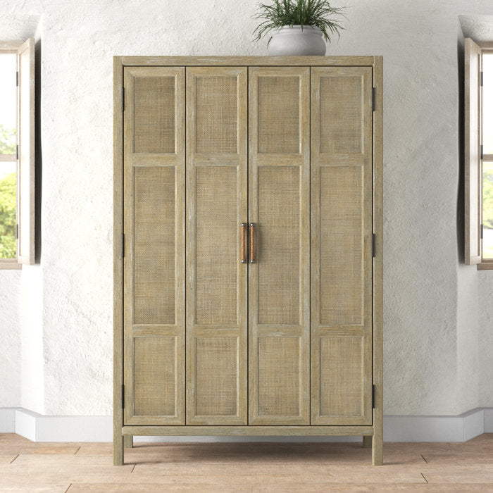 Celeste is not merely a cabinet — it’s a hush, a presence. With tall doors paneled in handwoven cane, framed in a weathered embrace, she carries the mood of a Provençal morning: quiet, golden, timeless.