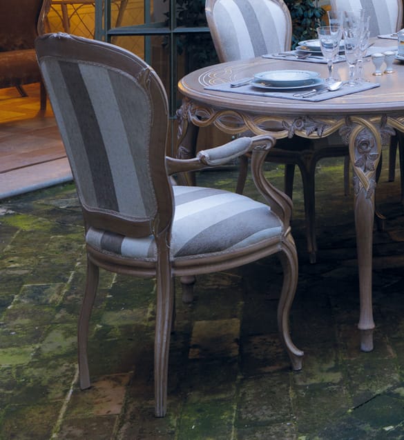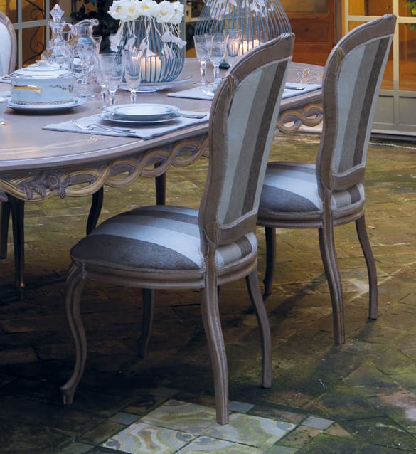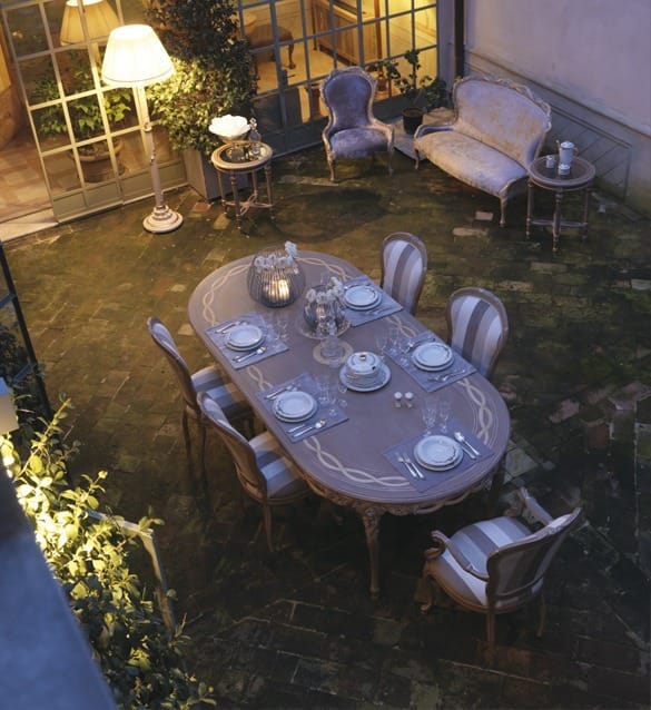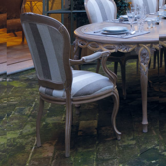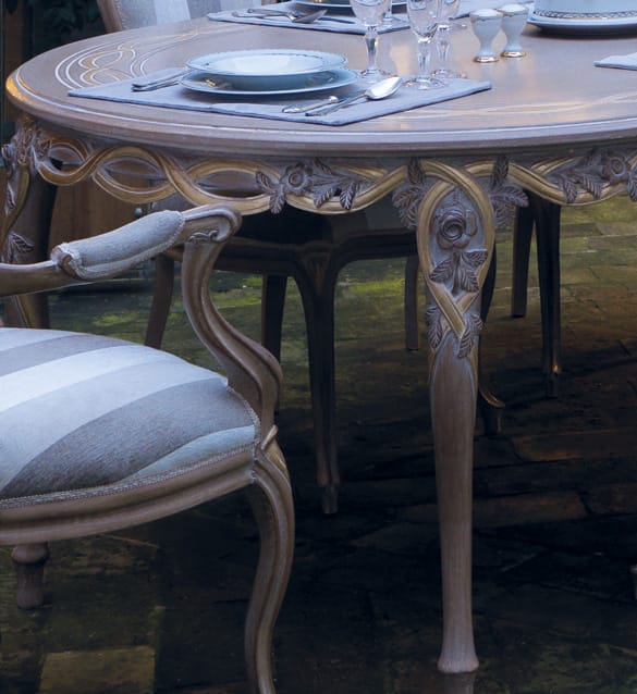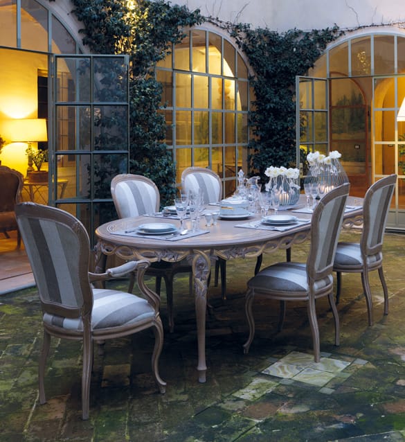 Carved with quiet confidence, this dining ensemble evokes evenings under balmy arches and open French doors.