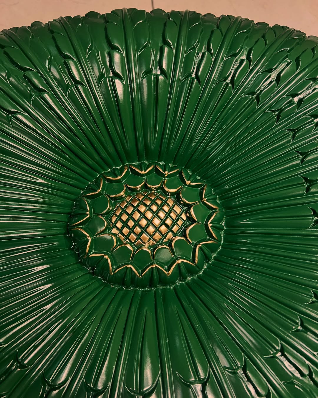 At her heart lies a hollow—a secret garden cast in deep green.