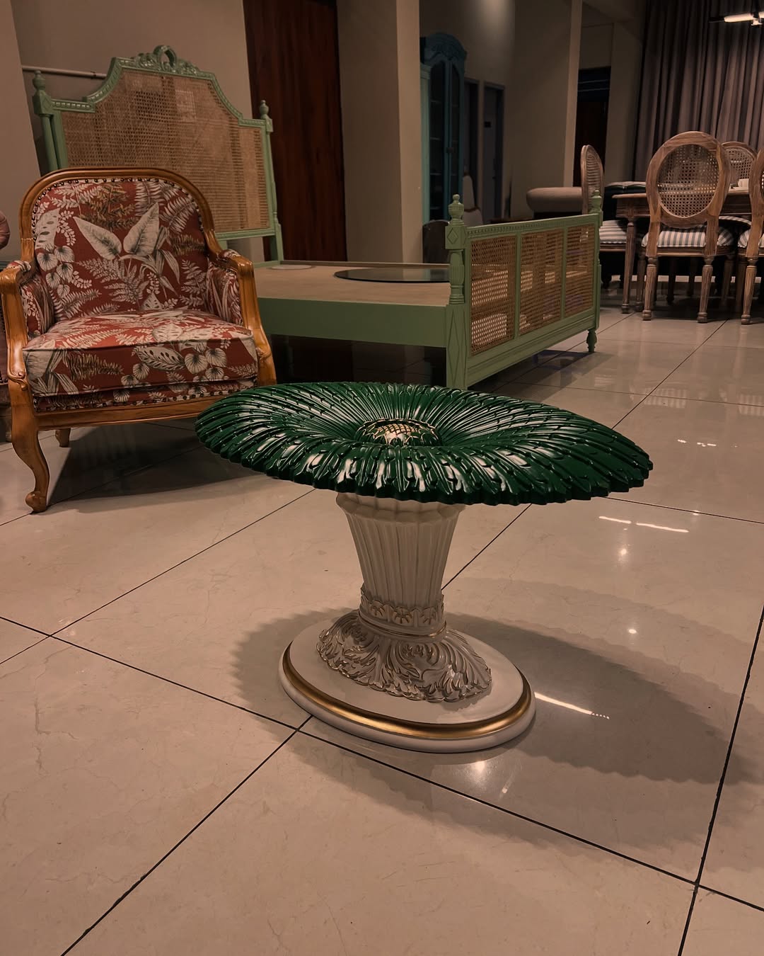 A table that gathers sunlight, secrets, and stories, rooted in myth, finished in grace.