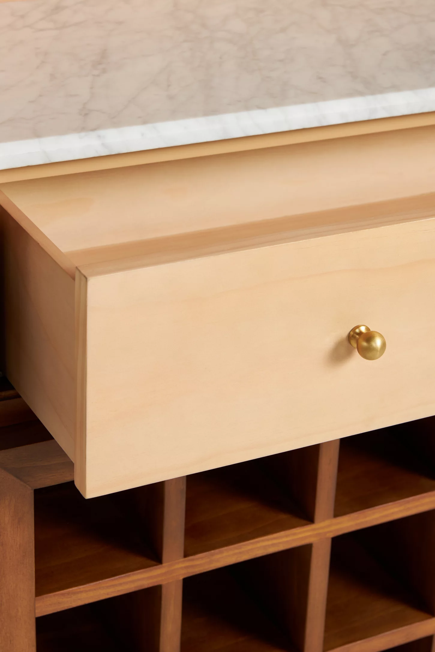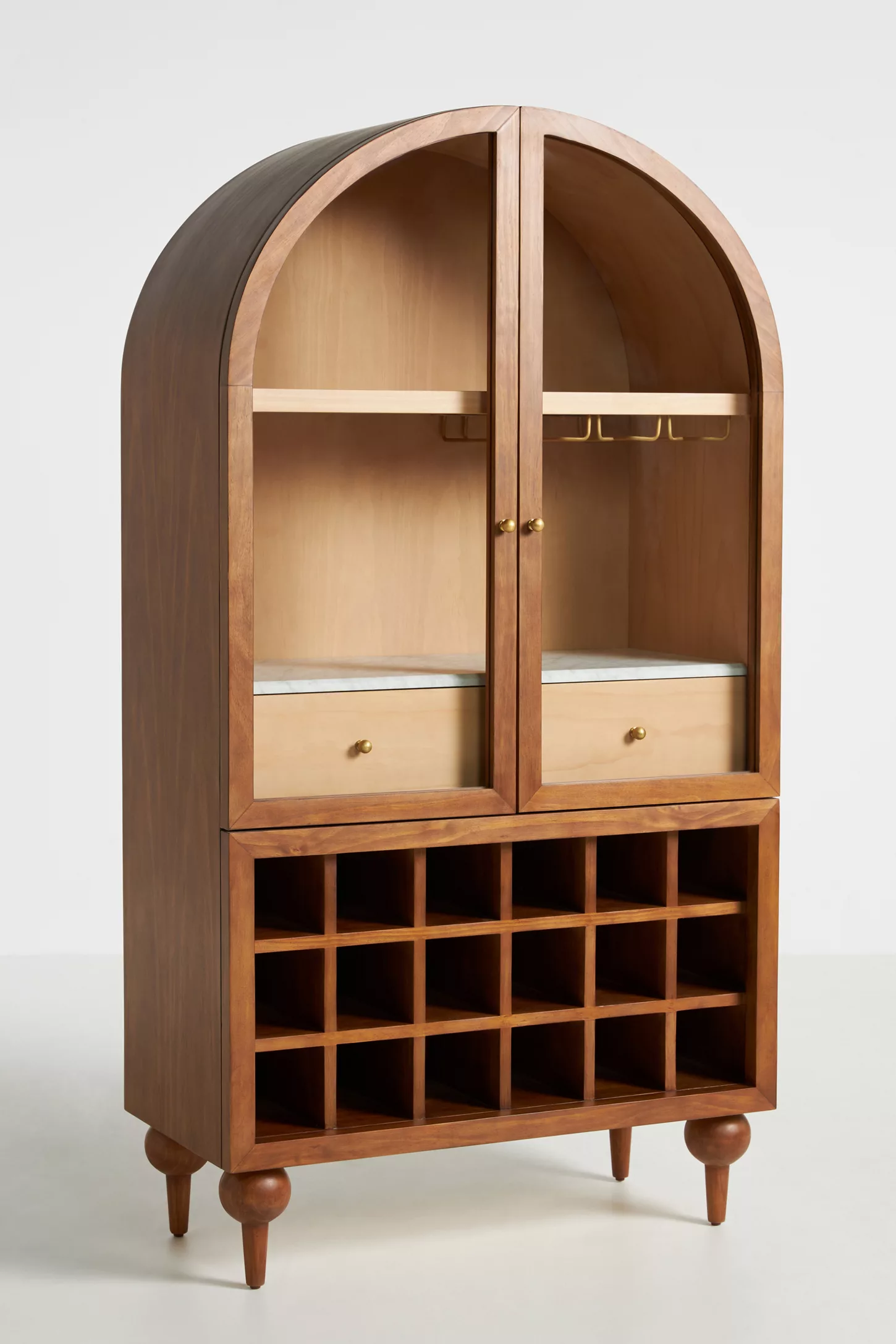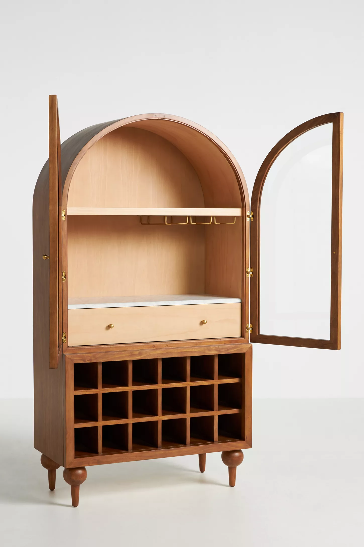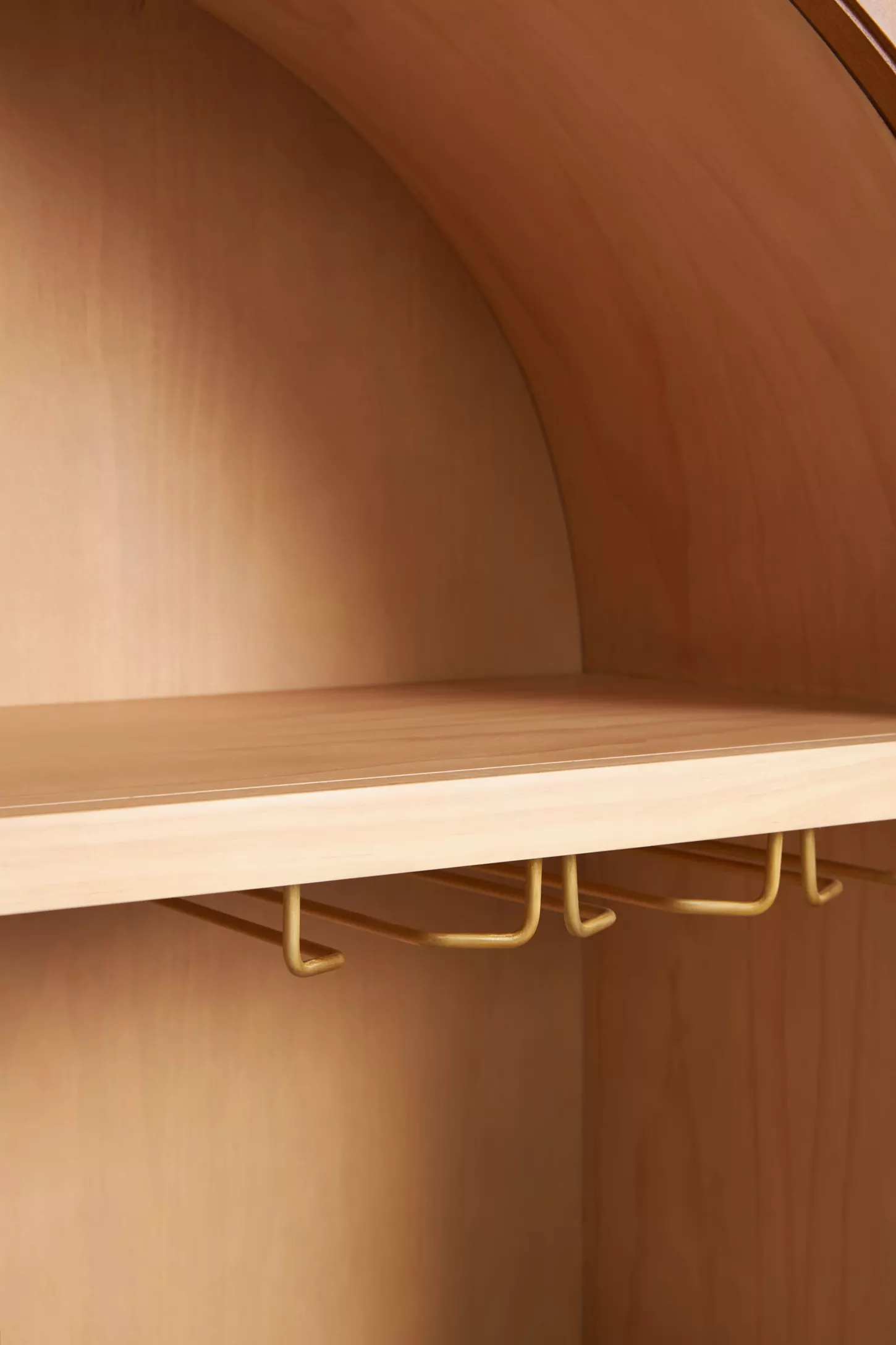 ✦ One curved bar cabinet in natural wood polish