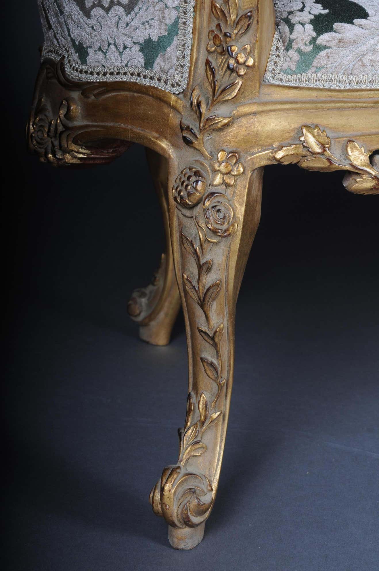 This isn't a bench; it's an interlude—a place where tales unravel in golden silence. Regal scrolls cradle you, while the tapestry hums in ancestral greens and dusky silvers.