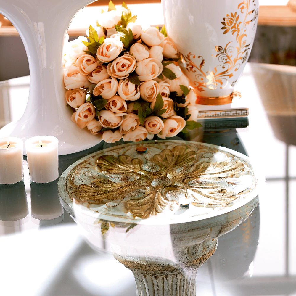 The base anchors her gently — carved in ode, finished in reverence. There is no vanity here, only grace etched by quiet hands.