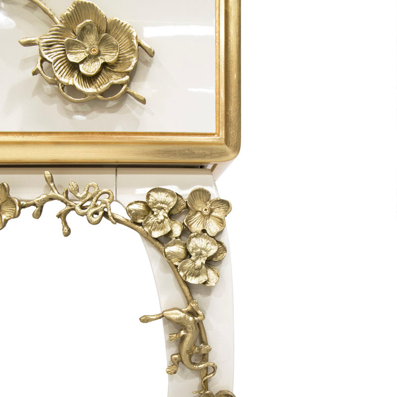 Each petal and stem carries the weight of devotion, as though the cabinet itself remembers the gardens of forgotten palaces.