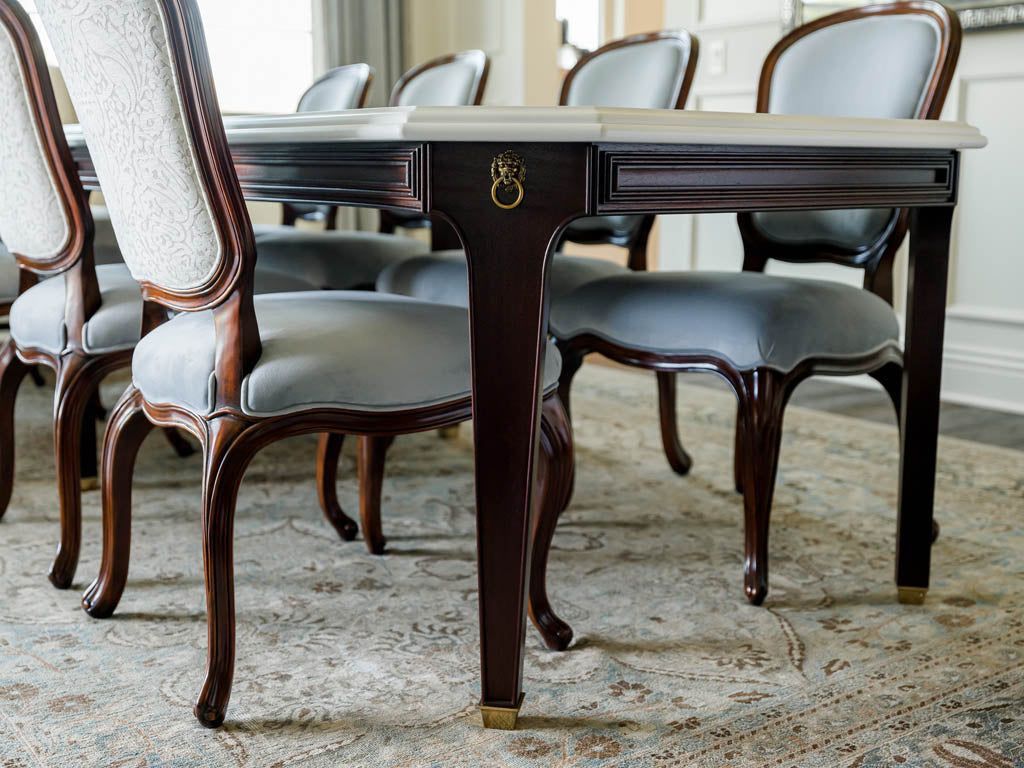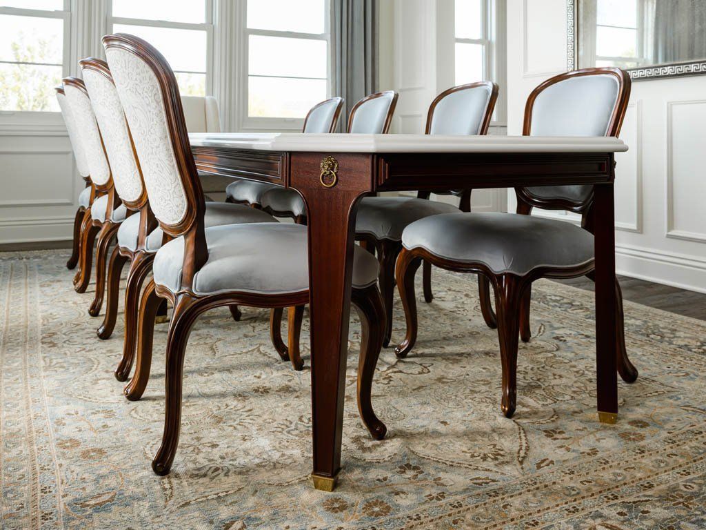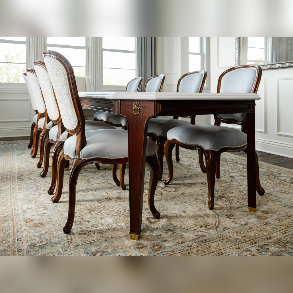 There’s a stillness in its presence, dignified yet inviting — a table meant for more than meals, where every evening glows with timeless grace. Heritage lives in every curve, making it a space for gentle grandeur.