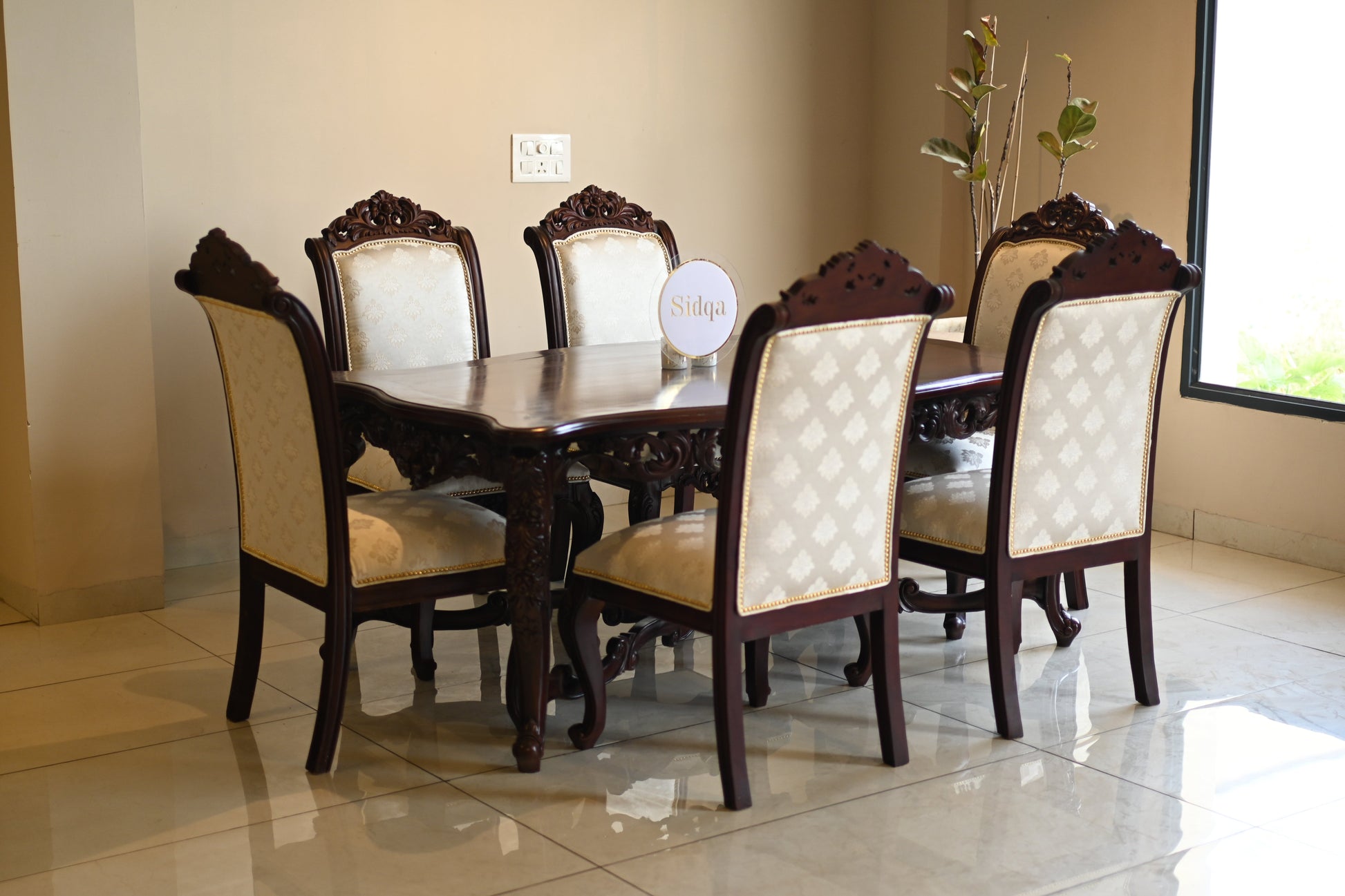 ✦ Hand-Carved Dining Table 6 Feet