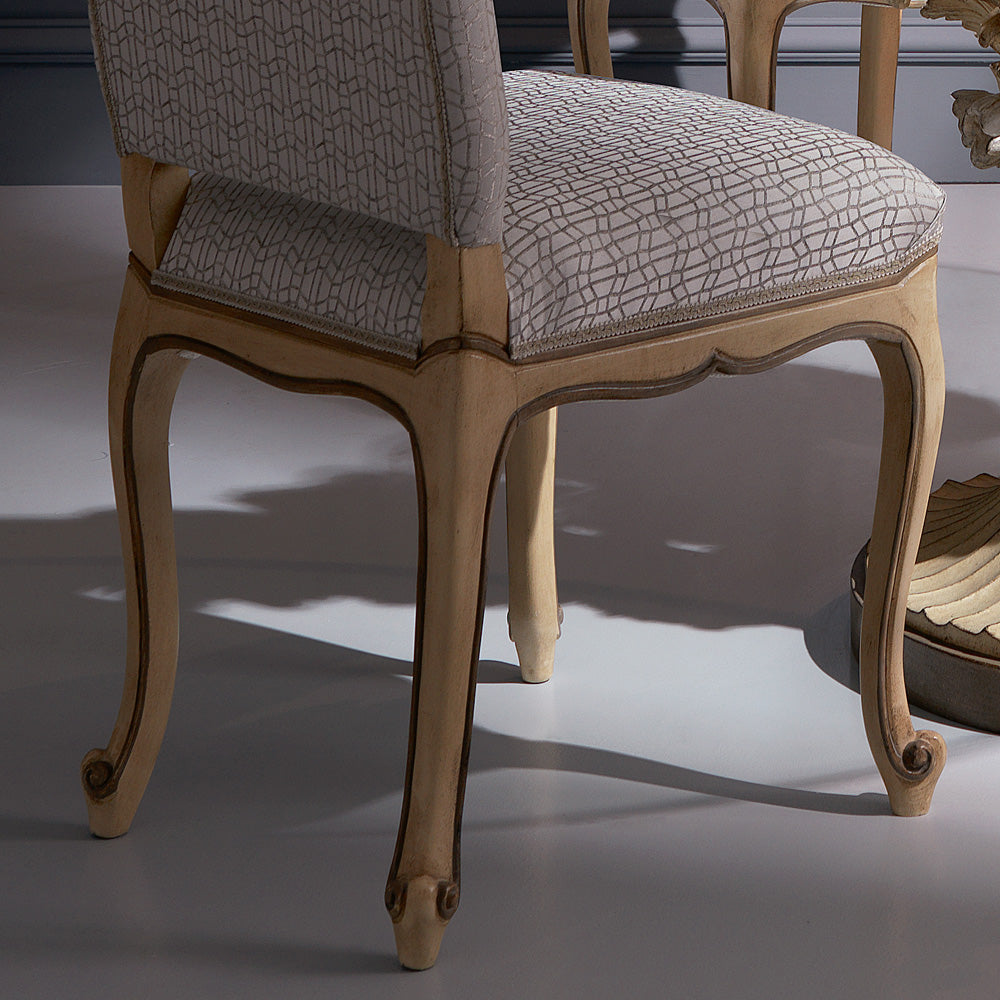 Paired with subdued ivory chairs, she becomes the stillness between two movements.