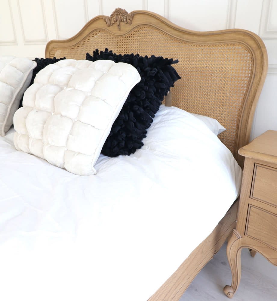 Each curve shaped by memory, each grain a quiet triumph. Its arching headboard sings softly of Sunday silences and moonlit musings. Cane breathes, teak remembers.