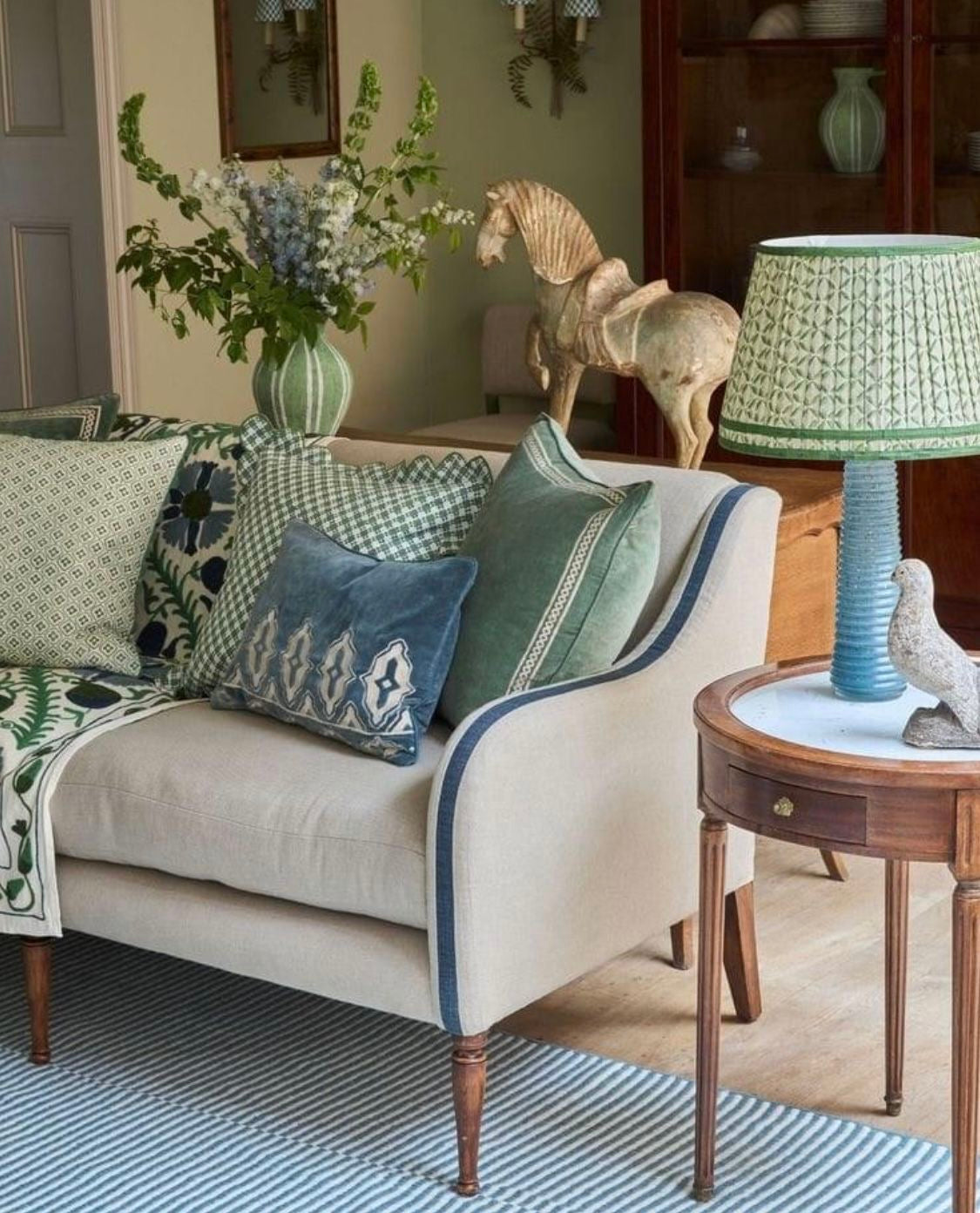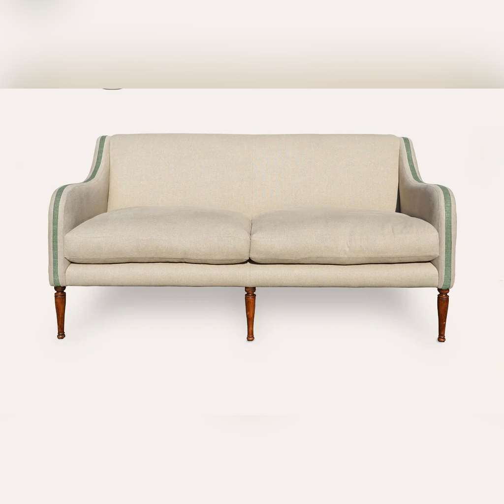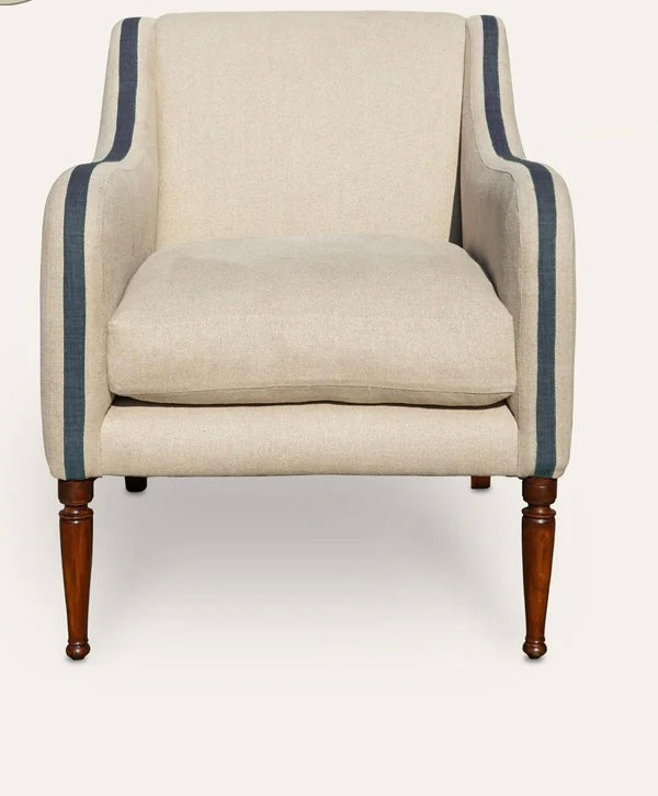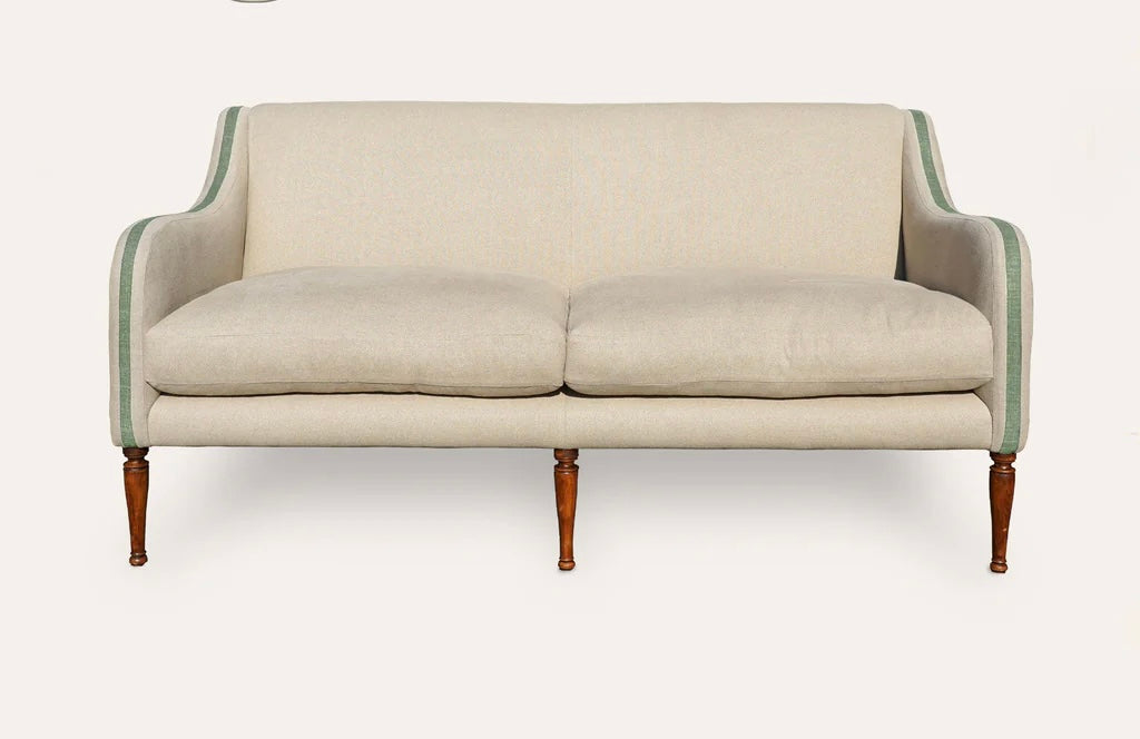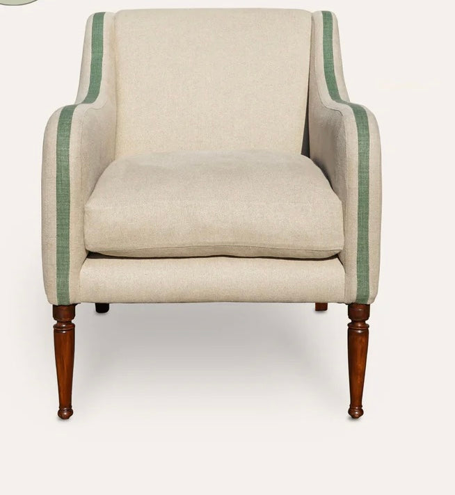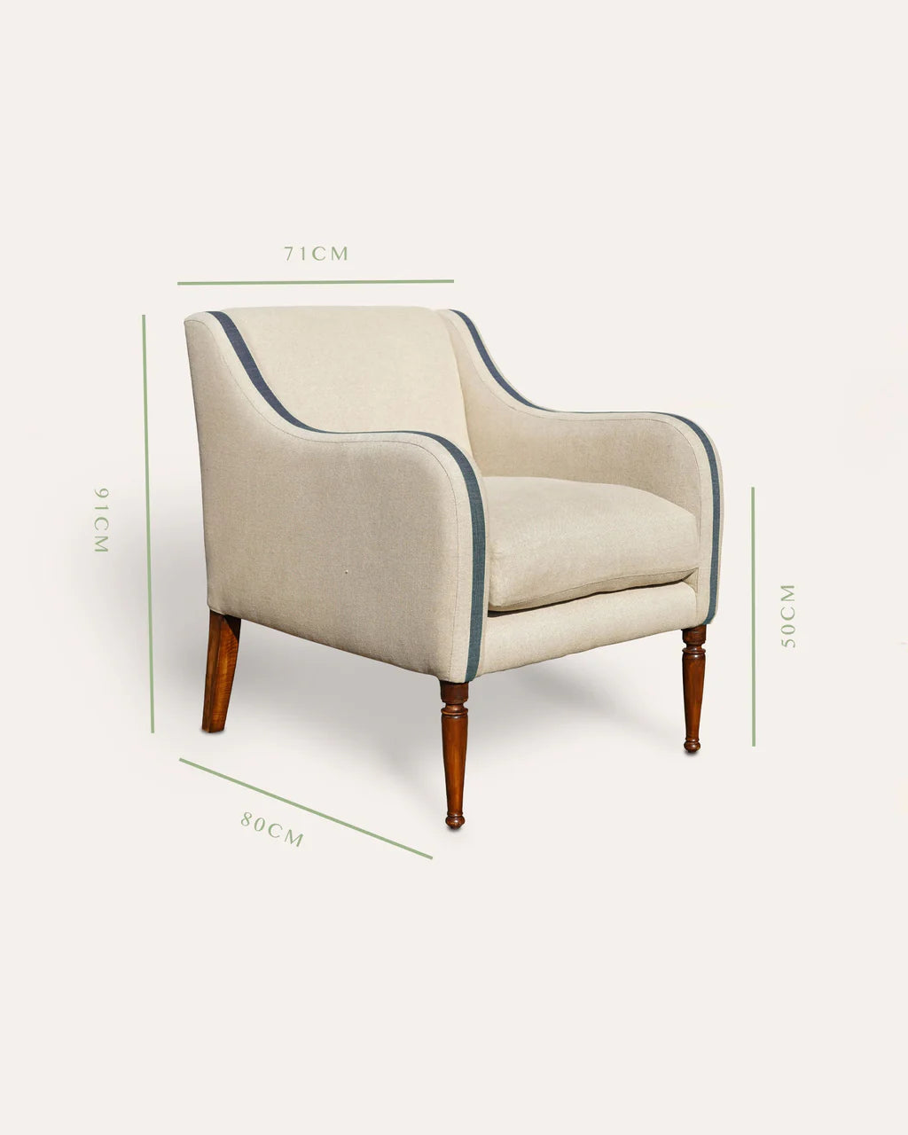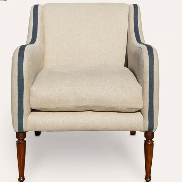 Her legs in warm wood finish anchor the piece in calm, quiet confidence.