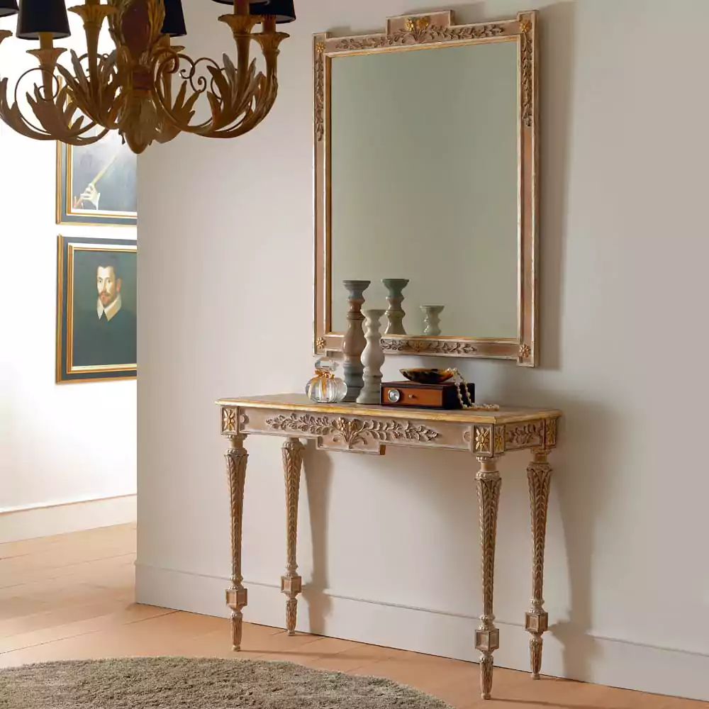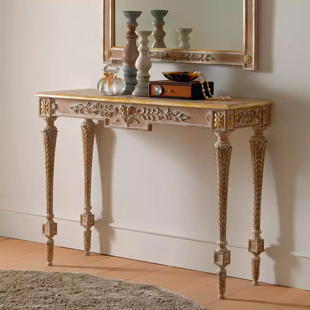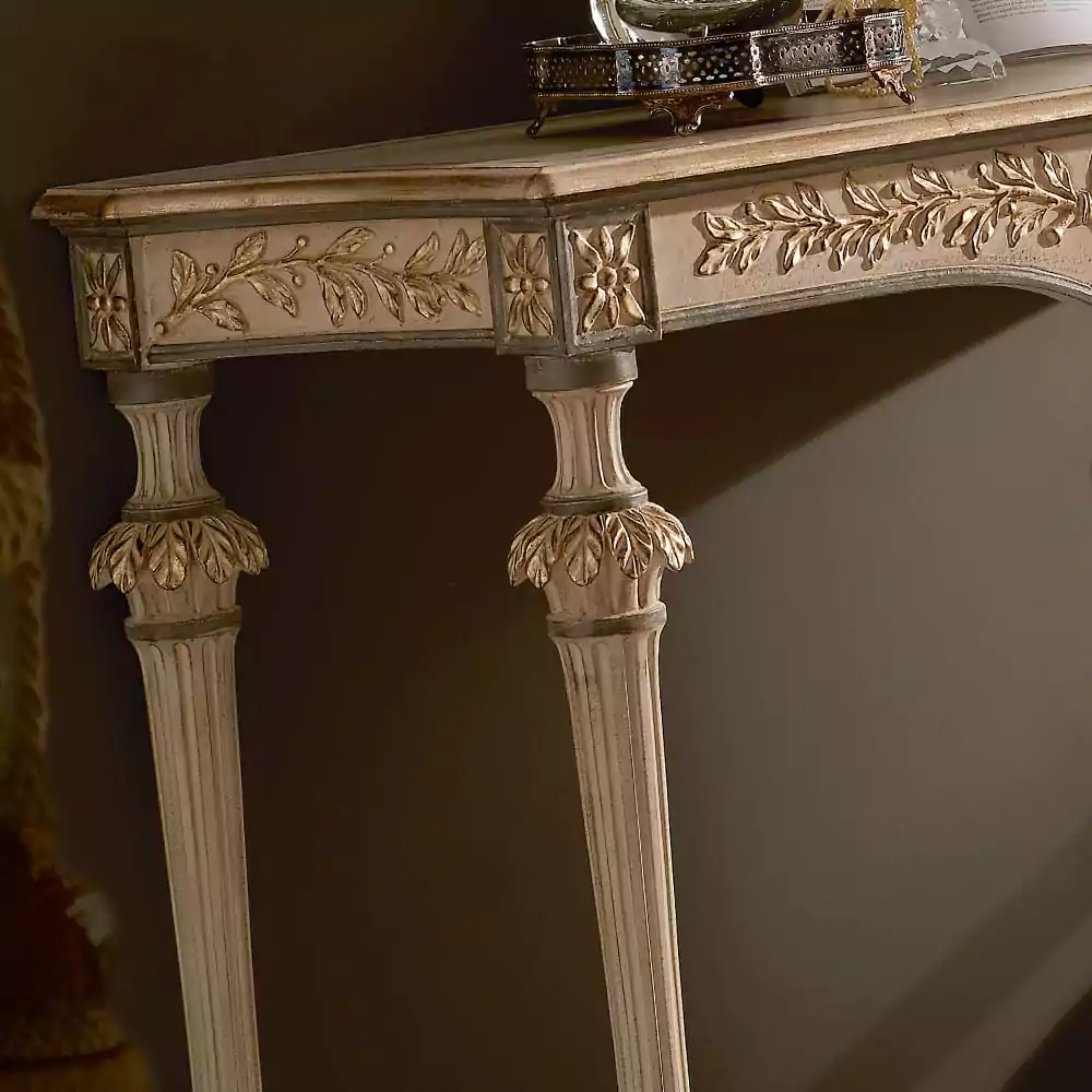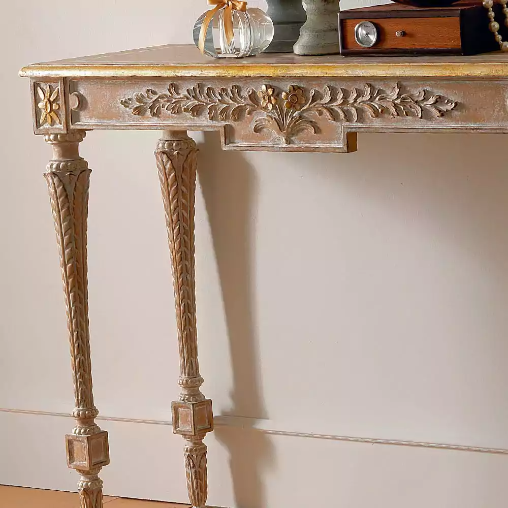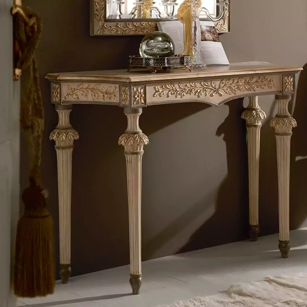 The French beige finish carries a rustic soul, worn like linen warmed by the sun.