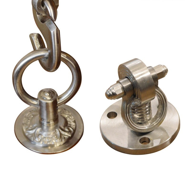 Her magenta cushions bloom loud against the calm, like silken secrets tossed over powdered marble. The silver chains lie waiting — part promise, part poetry — ready to lift her into grace.