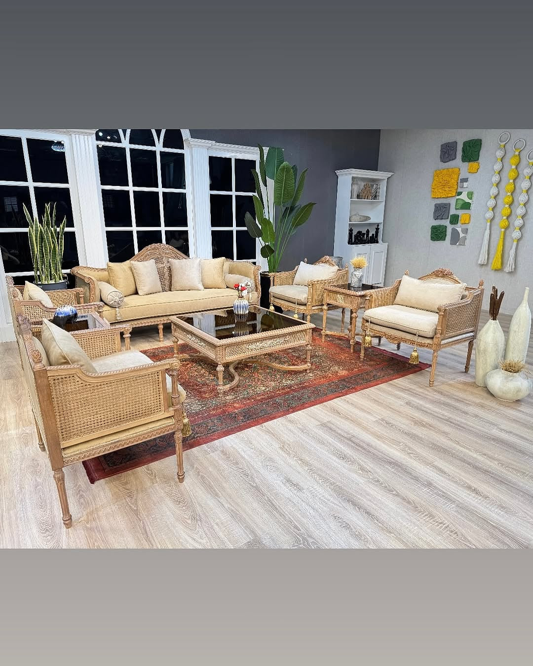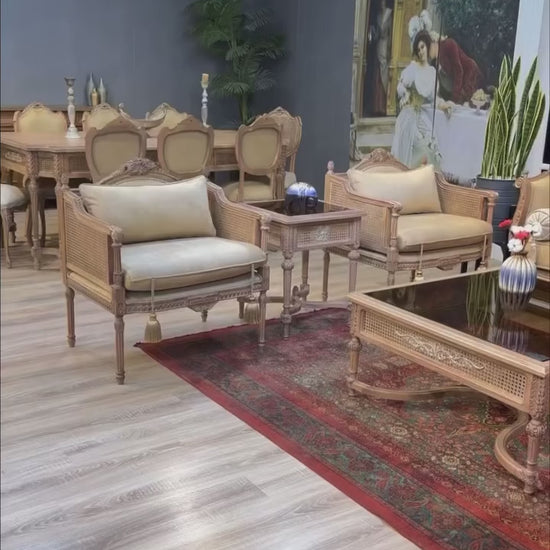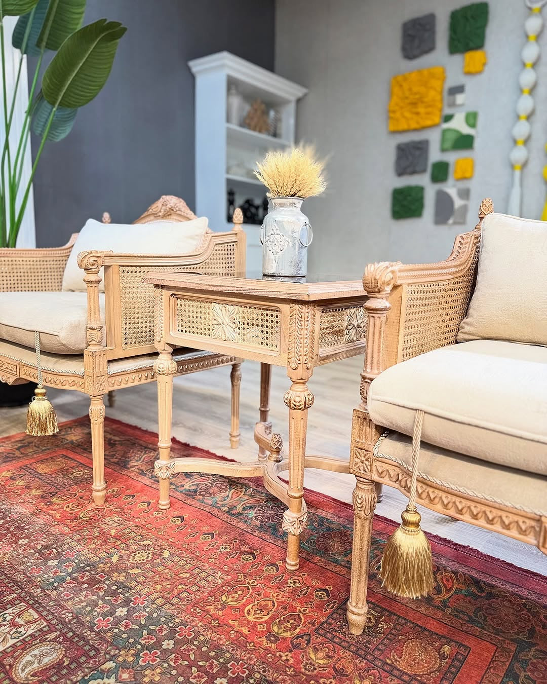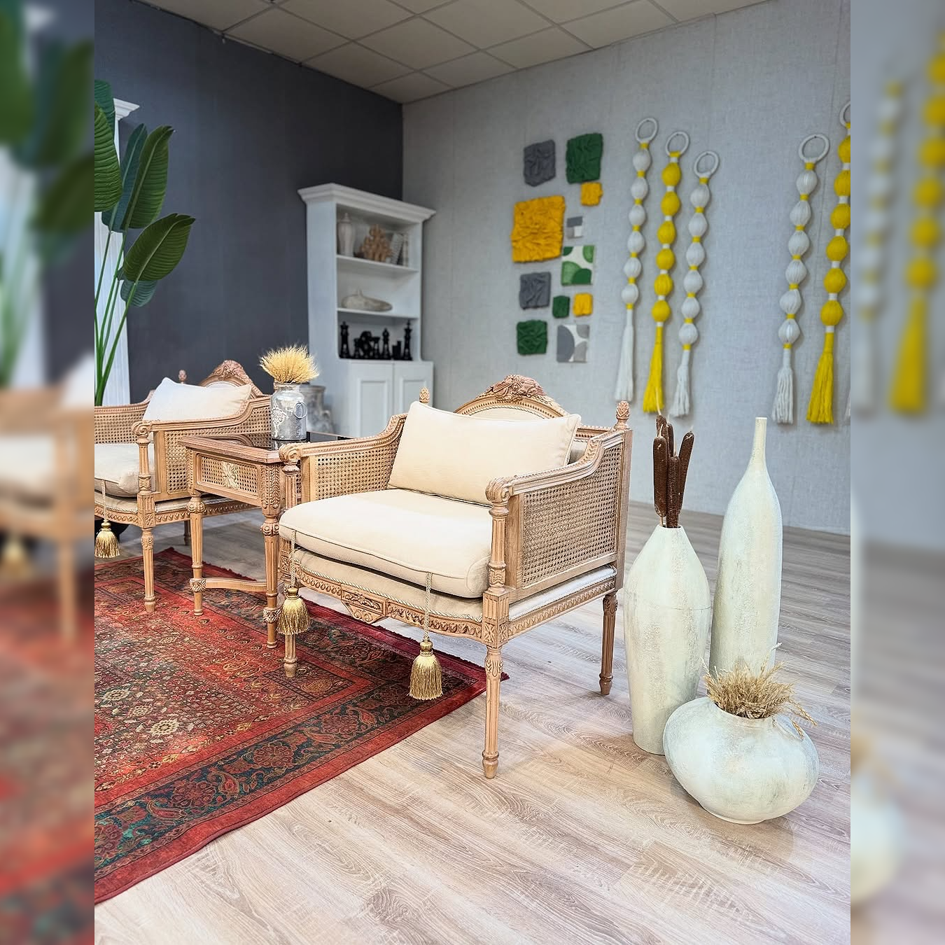 Whispers woven into cane carved elegance...