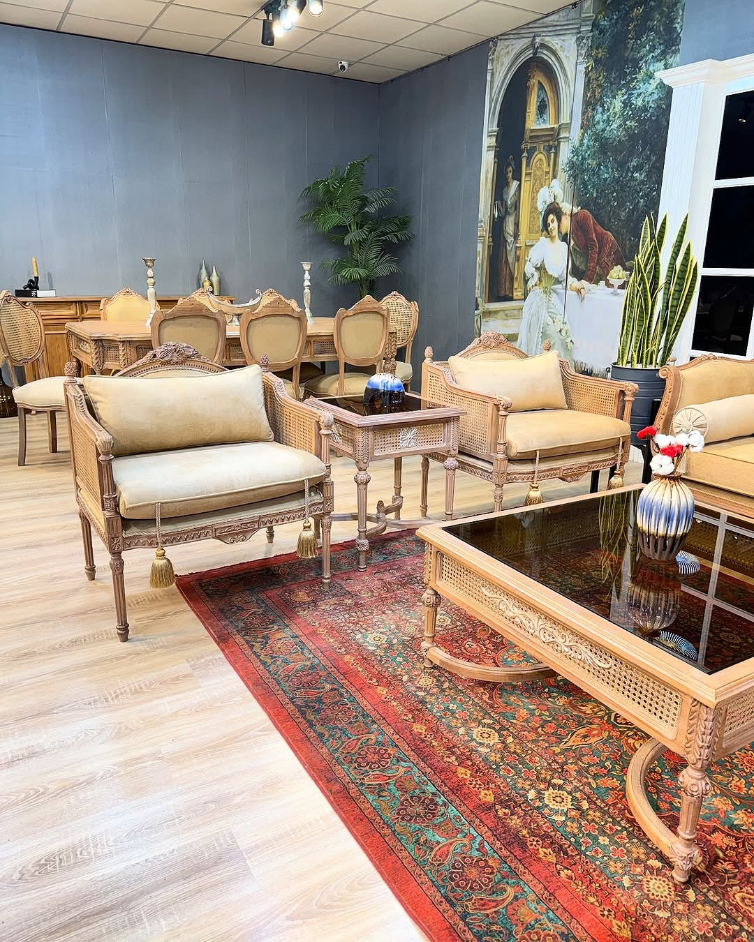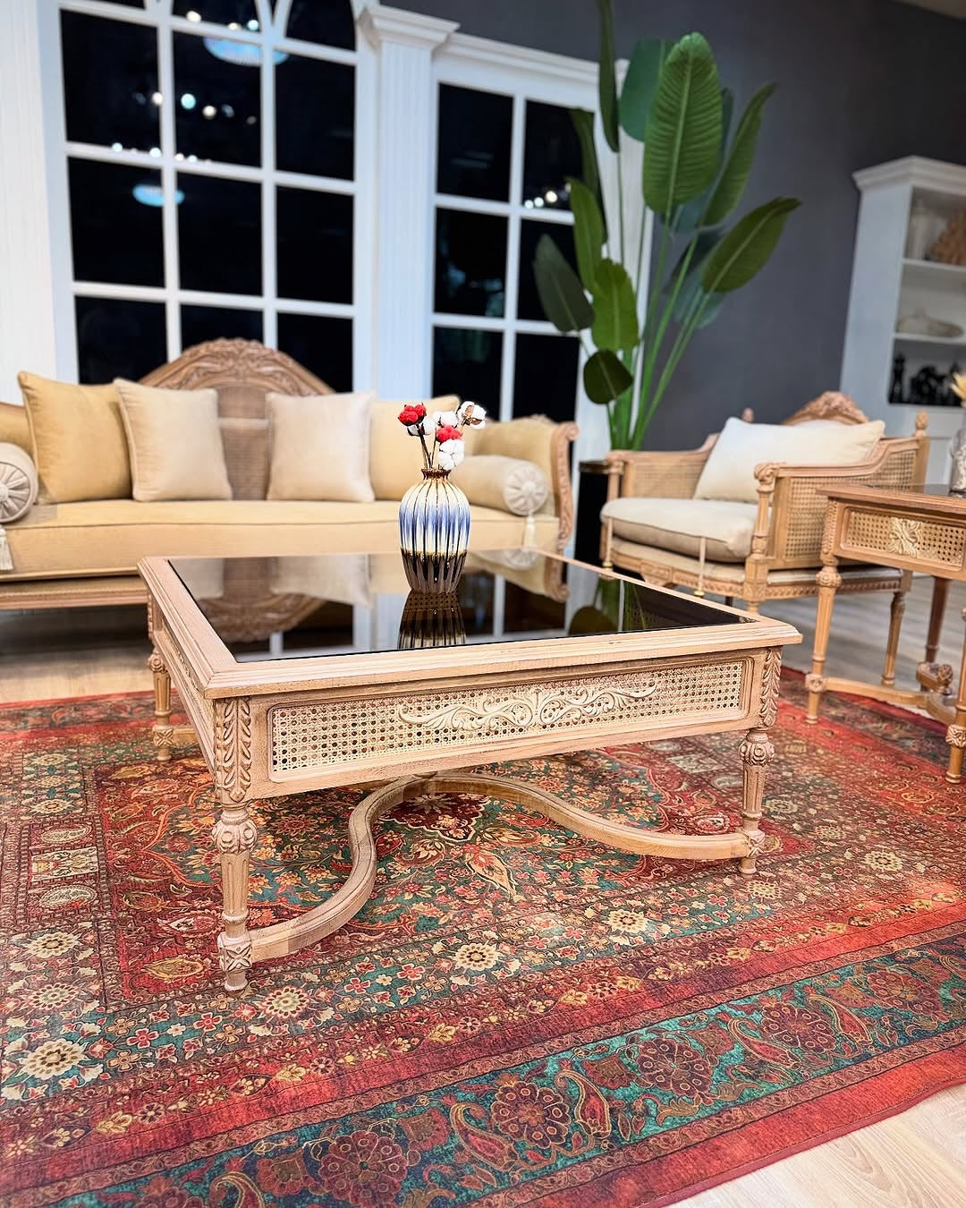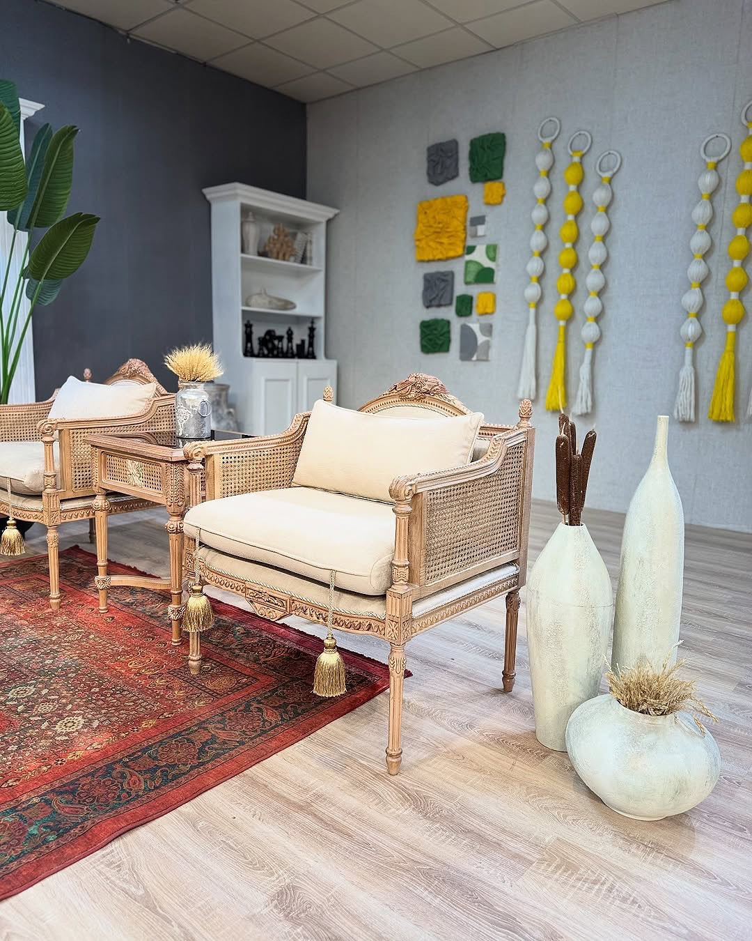 Whispers woven into cane carved elegance...