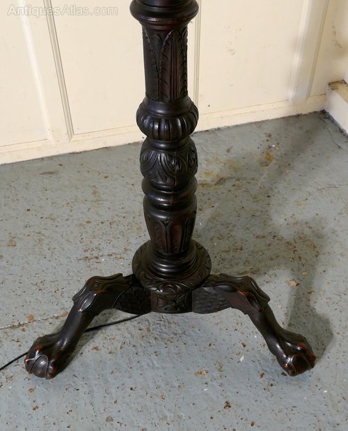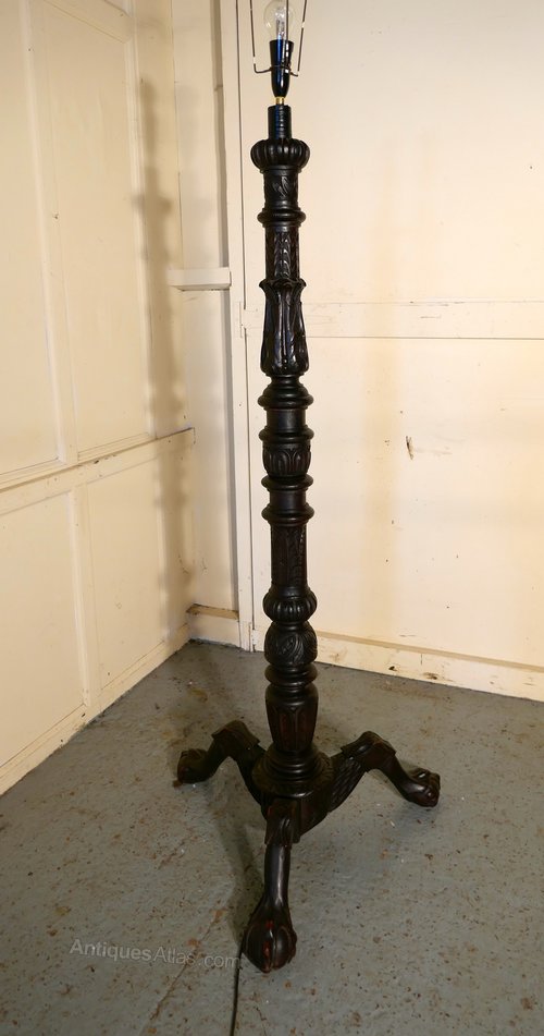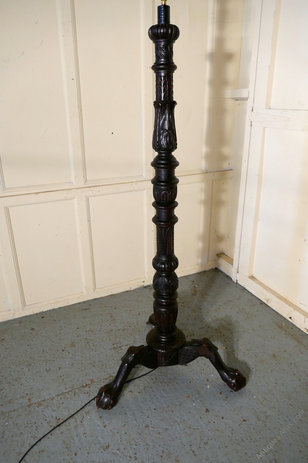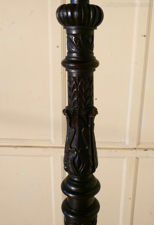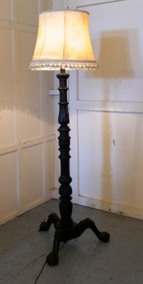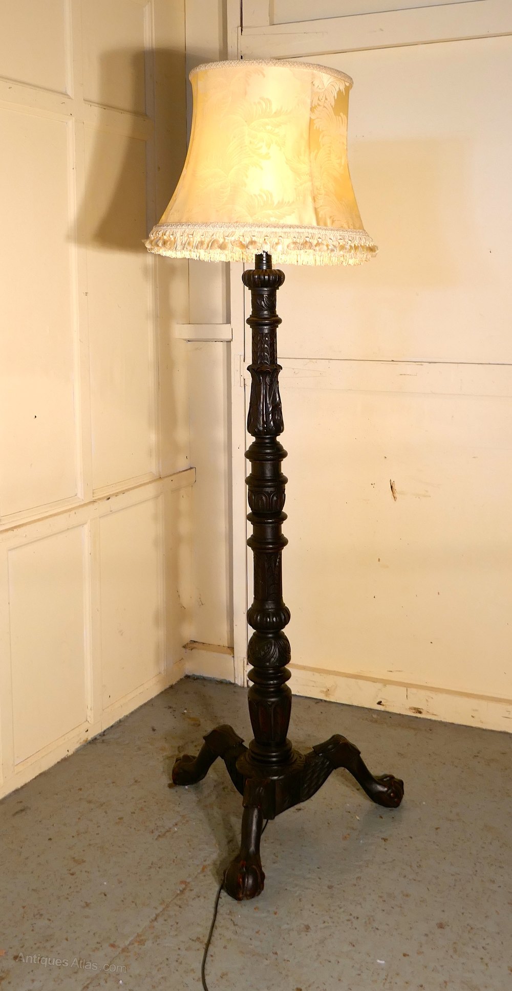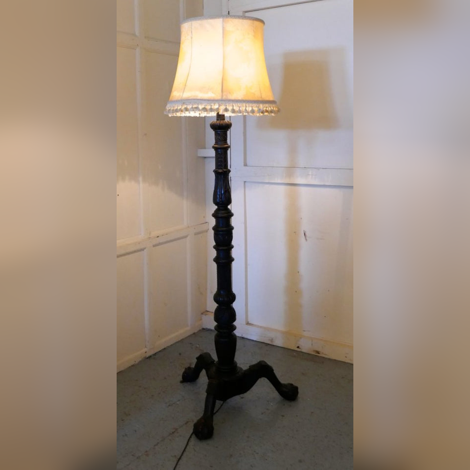 ✦ 1 elaborately carved floor lamp with cream pleated fringe shade
