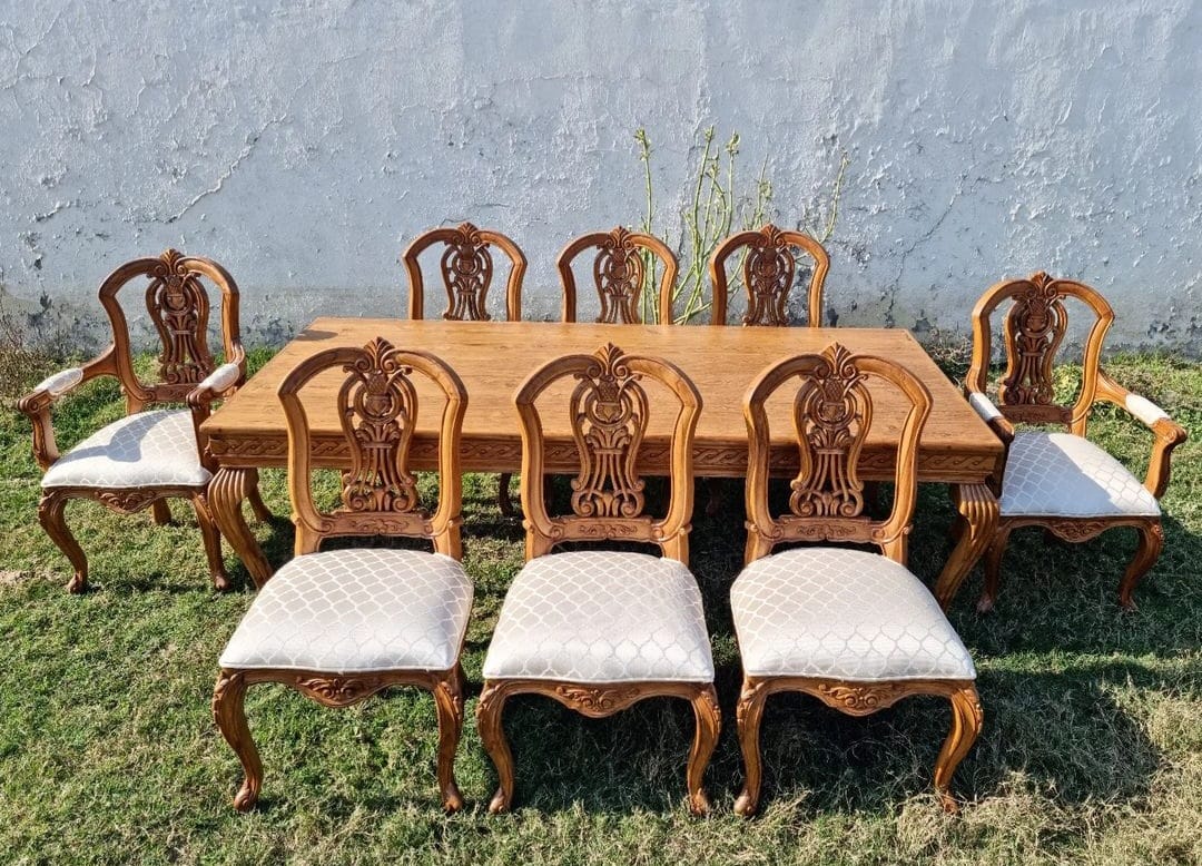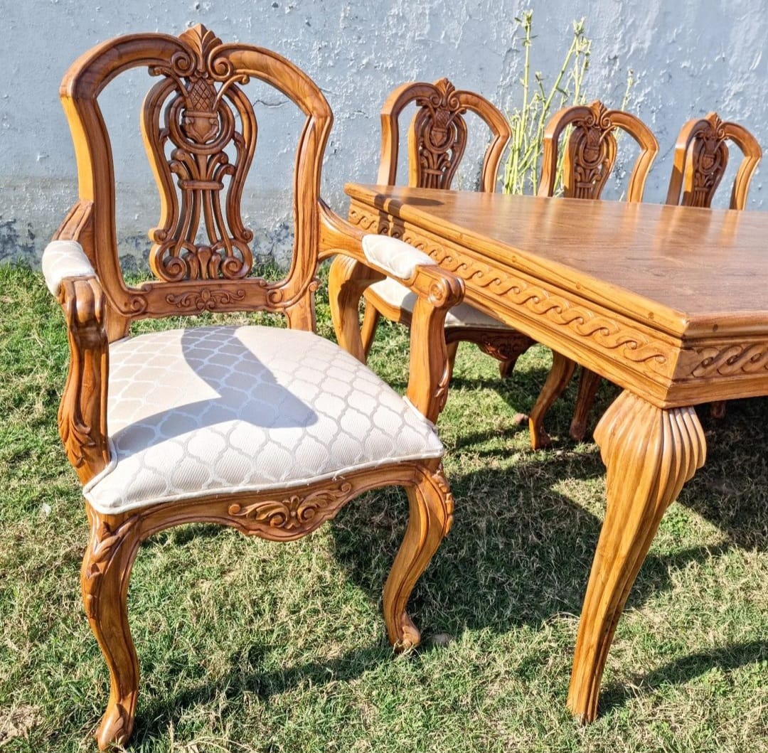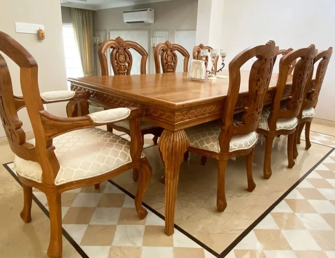 The natural polish carries the warmth of seasoned teak, a finish that echoes temple corridors and ancestral courtyards.