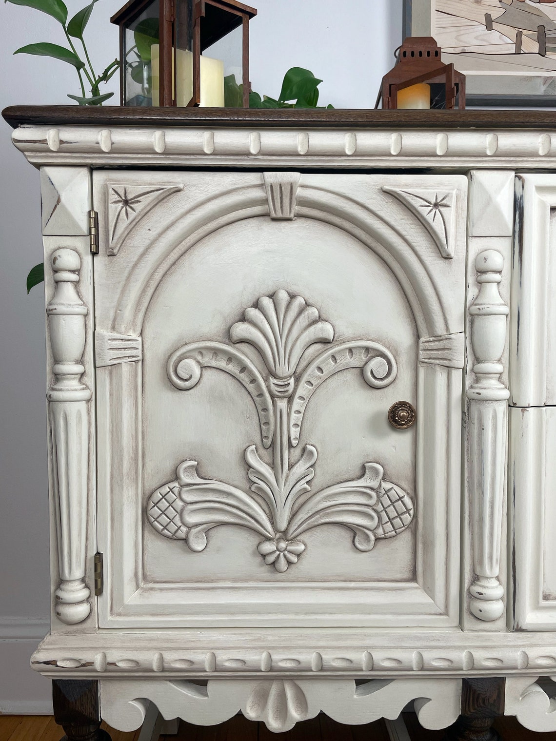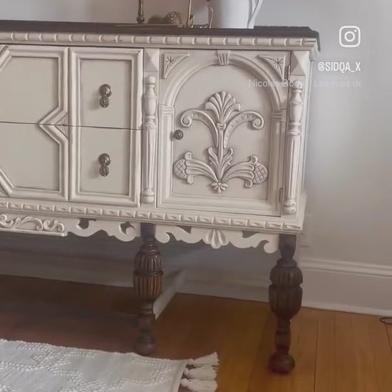 Pavielle stretches in creamy poise, her surface touched with the faintest glow, grounded by long brown legs that anchor her in timeless grace.