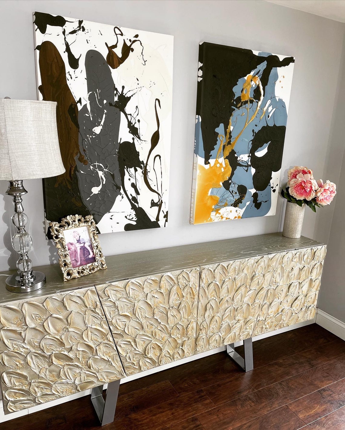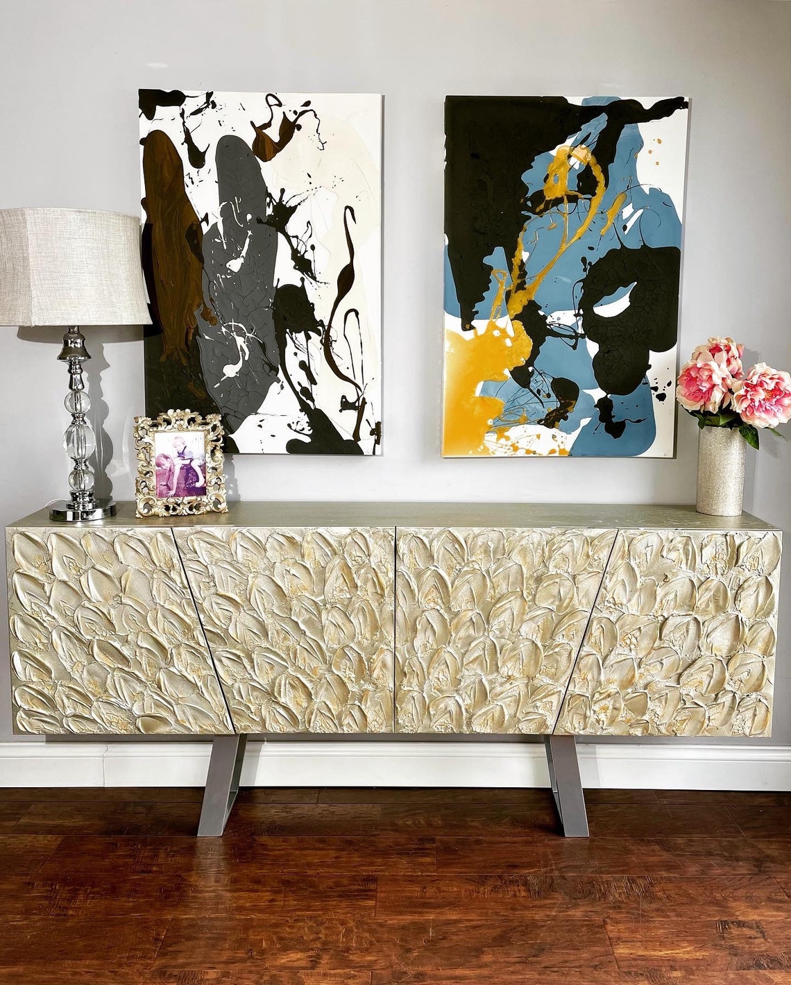 A soft shimmer of champagne metal brings the Petal Dust buffet to life.