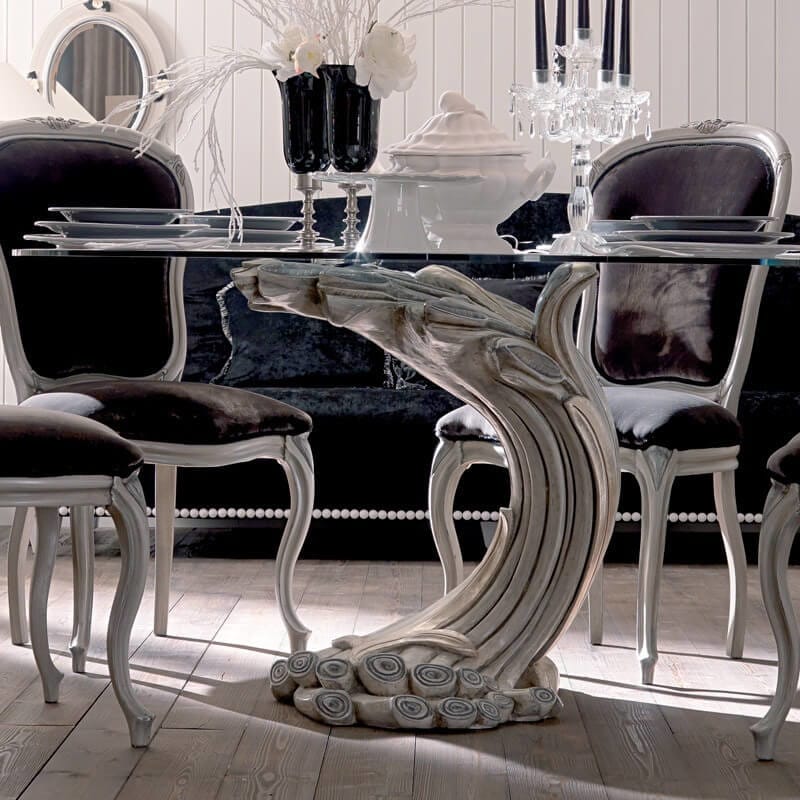 Twisting upward like a breath caught in time, her base flows in sculpted roses and storm-swept curves — neither branch nor wave, but something dreamt between them.