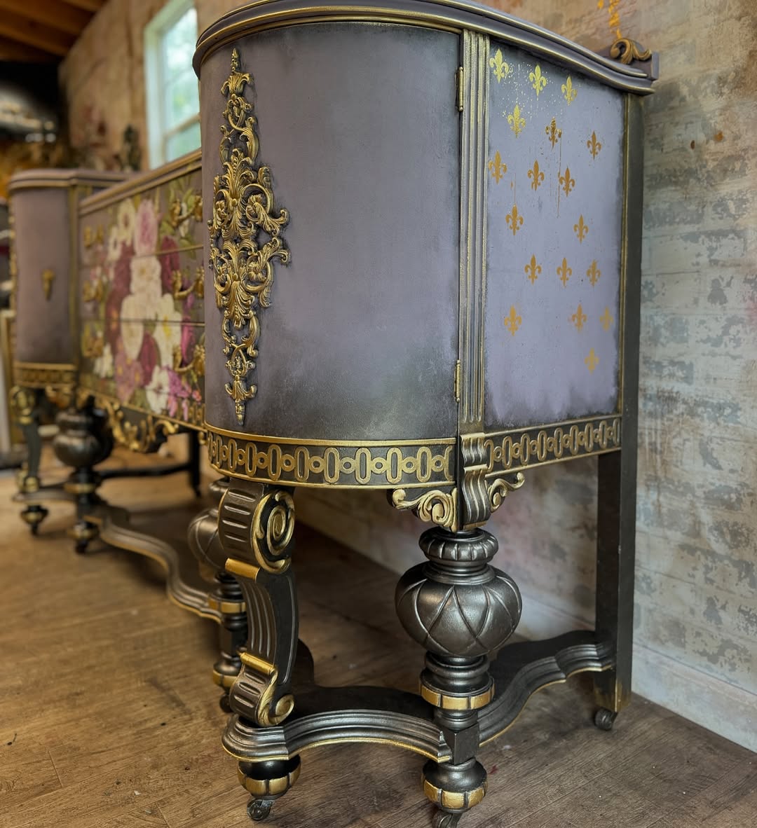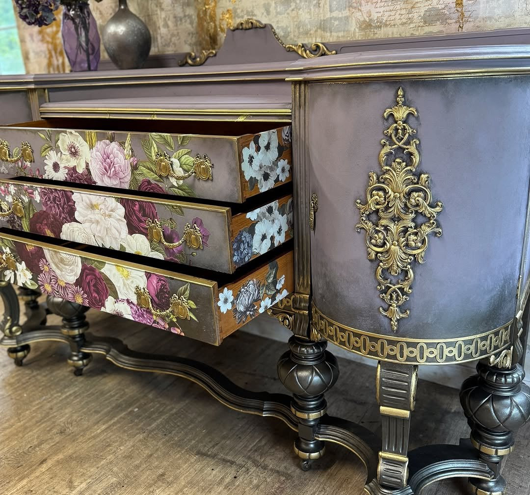 At its heart, a grand floral tableau opens into drawers, each petal and leaf rendered in delicate relief, inviting touch and admiration alike.